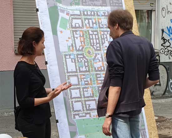 Bild: Frau Hannah Nagl im Gespräch mit Einwohnern